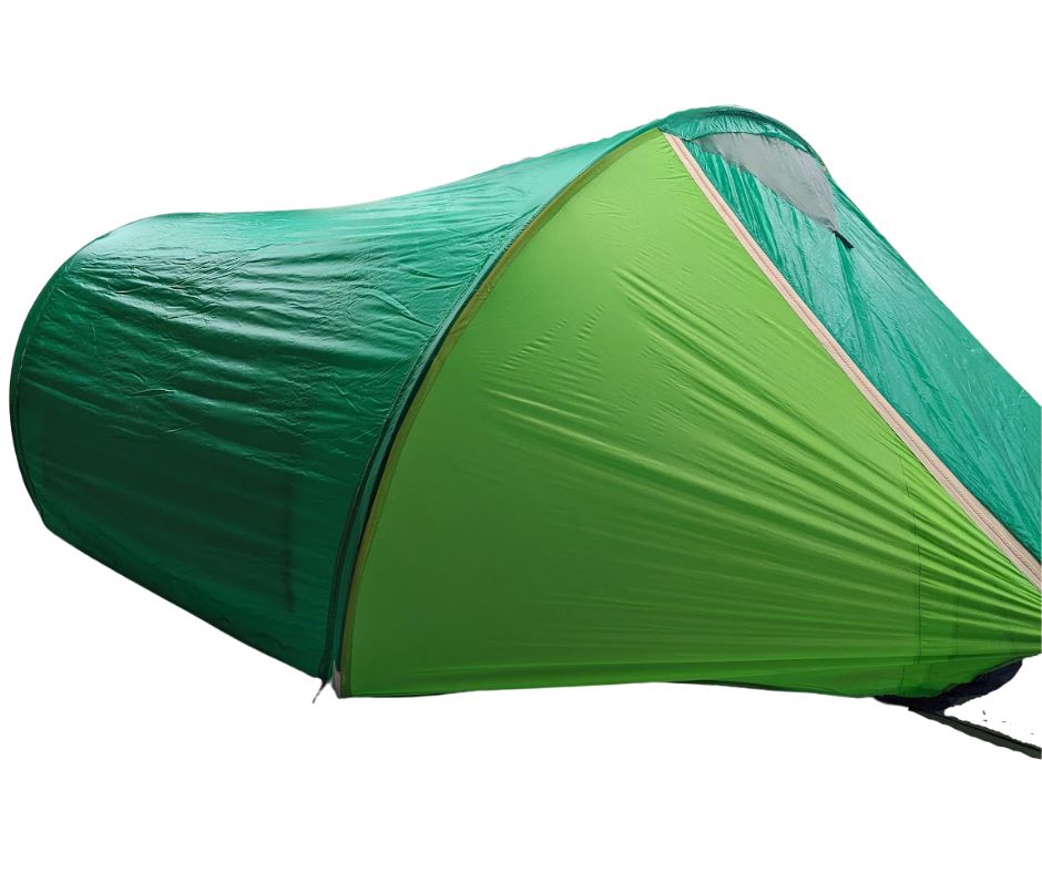 Fast and easy setup with two permanently curved poles which slip easily into full length sleeves. Tent can be fully setup in just minutes even in strong winds! Only requires 4 stakes.