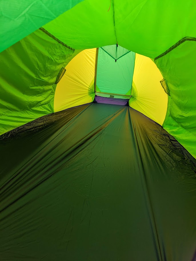 Most Room for sitting and working with good headroom. 60″ width (89″ in Model 5). Two people can sit side by side in front half of Model 2 or anywhere in 3, or 4 across in Model 5. Floor shape gives best fit for sleeping bags and gear.