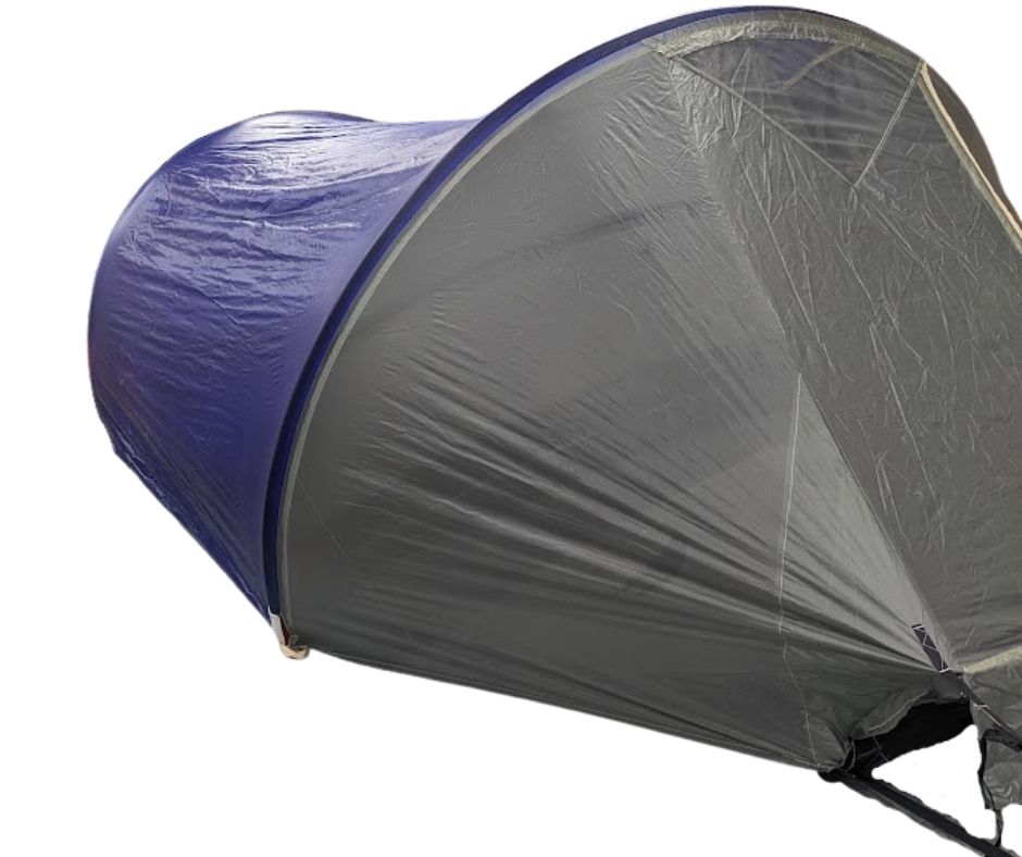 Fast and easy setup with two permanently curved poles which slip easily into full length sleeves. Tent can be fully setup in just minutes even in strong winds! Only requires 4 stakes.