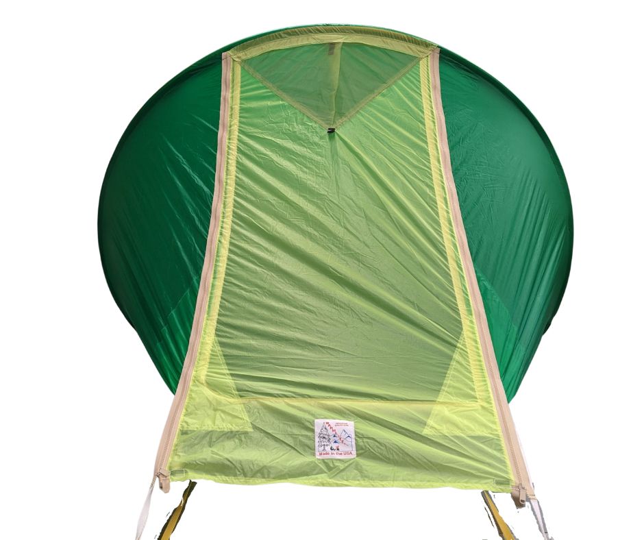 Tents are made out of silicone-coated rip-stop nylon. Our standard in-stock tents are double-wall construction which allows for reduced condensation inside the tent. Standard tents also come with a large door on one end and side windows. All materials are produced in United States, all Warmlite gear is handmade in the United States.