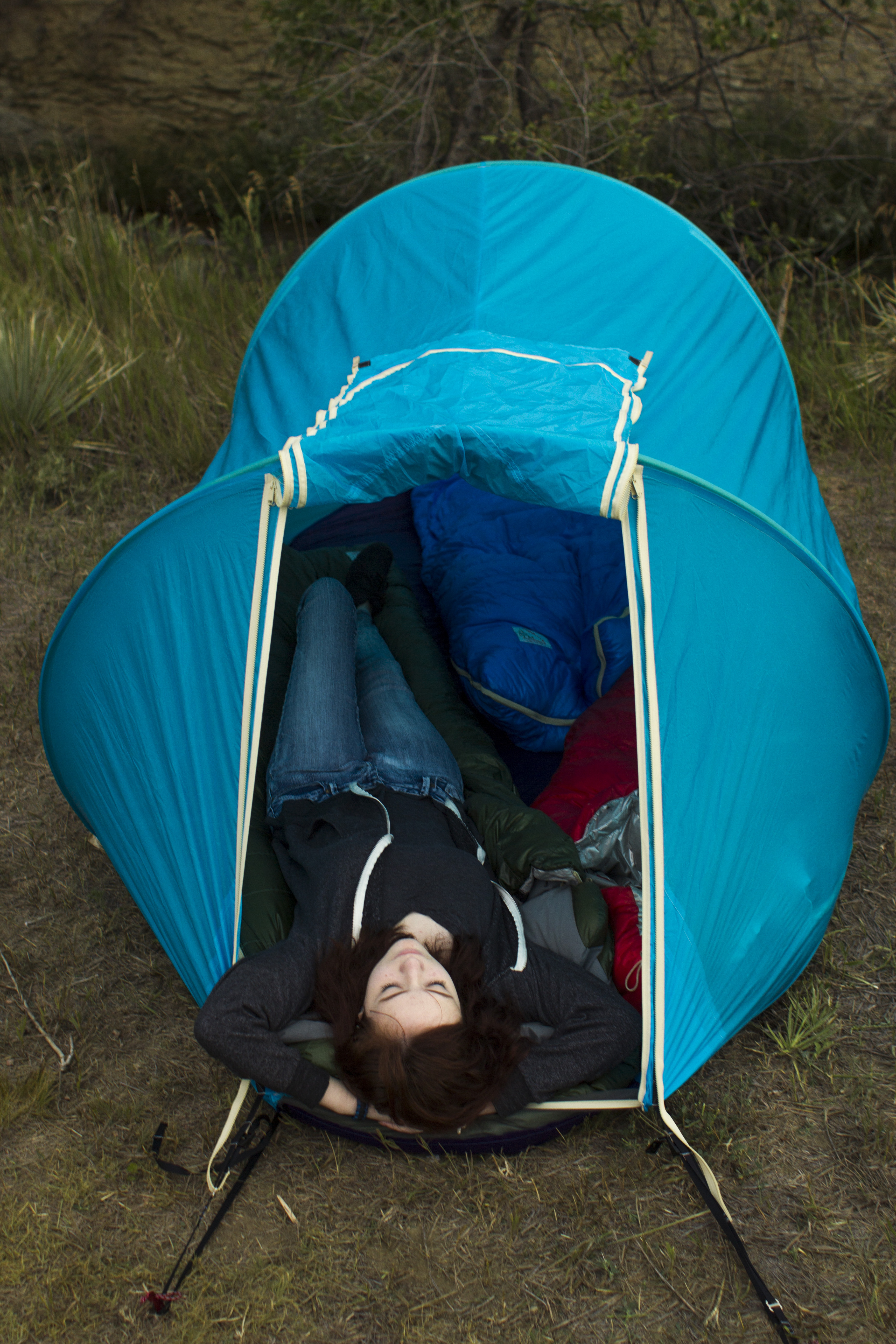 EASY TENSION ADJUSTMENTS, from INSIDE for tight wind-stable tent without leaving your warm, snug bed.