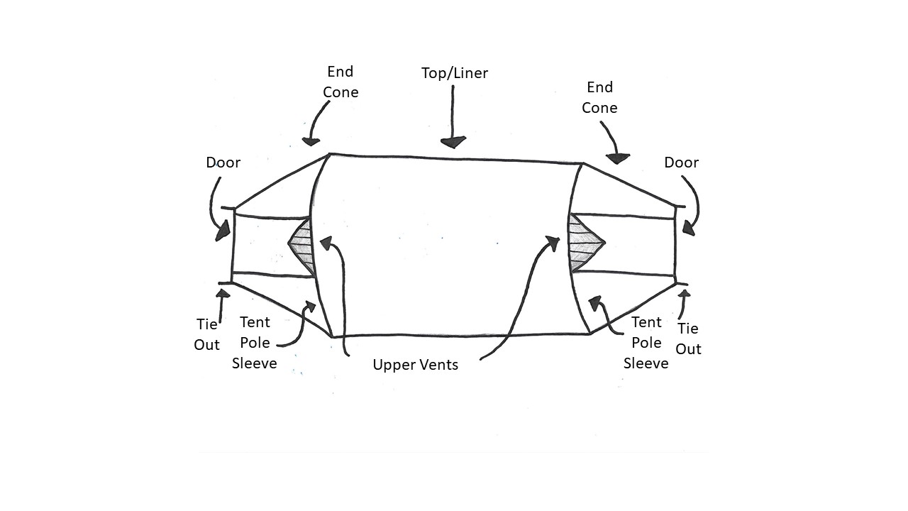 Elliptical ARC Shape for wind stability, strength, quietness, headroom and space. This shape gives stable air flow and the lowest wind loads while diminishing stress on materials, flapping, noise and failure common in other tents and designs. No need for many annoying staked out lines and their stress points. Conical ends form built-in “vestibules” for cooking and gear storage, and uniformly distribute loads from stakes, directed for best holding power. Well placed pockets aid gear storage and organization.